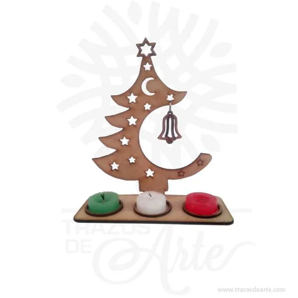 Arbol navidad velas en MDF de 3 mm, cortado con láser. Este es un maravilloso regalo, suvenir; empresarial o para amigos y familiares. No incluye velas.