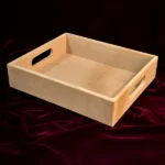 Caja bandeja para desayunos en MDF con manijas laterales. Ideal para presentar detalles y regalos personalizados con practicidad y orden.