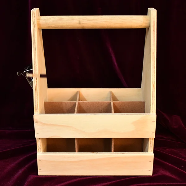 Caja para cerveza (Six Pack) perfecta para personalizar, caja de madera triplex de pino de 24 X 16 X 30 cm en crudo con 6 compartimentos y con destapador para complementar el regalo..