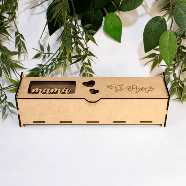 La Caja para Rosa en MDF Especial para Mamá es un regalo personalizado fabricado bajo pedido. Con dimensiones de 7 cm de alto x 25 cm de largo x 7 cm de ancho, está hecha de MDF de alta calidad y personalizada con grabado láser. Su diseño incluye una ventana decorativa y detalles grabados como «Te amo», ideal para guardar una rosa o pequeños obsequios. ¡Pregunta por nuestros descuentos especiales por volumen de compra!