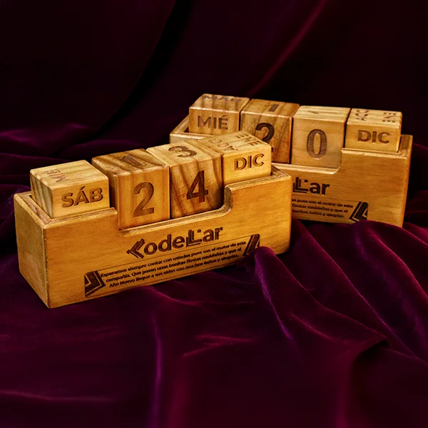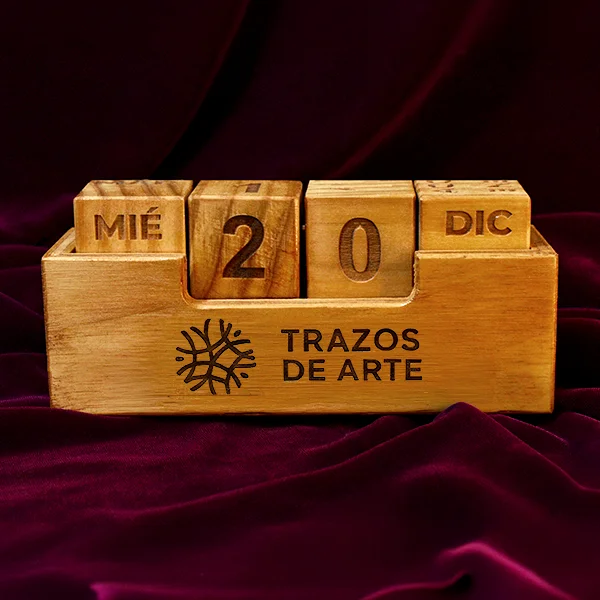 Calendario perpetuo de dados grabados a láser es una pieza funcional diseñada para aportar organización y estilo a cualquier espacio de trabajo o estudio. Fabricado en madera de excelente calidad, este calendario de escritorio incluye bloques intercambiables con las fechas y una base personalizada que puede adaptarse con nombres, frases o logotipos mediante grabado láser de alta precisión.