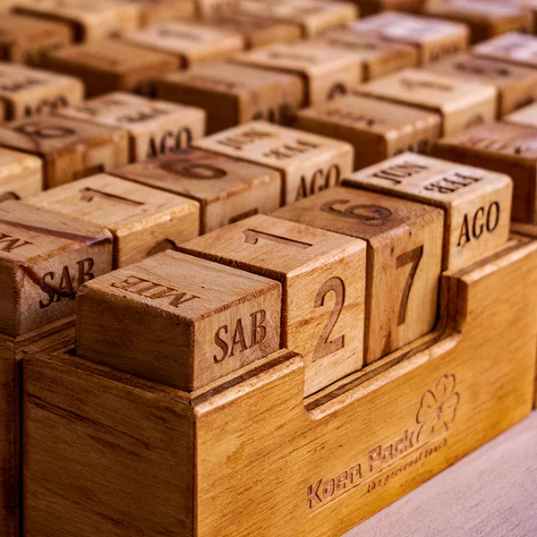 Además de su uso organizativo, este calendario en madera personalizado es una excelente opción como detalle corporativo o regalo especial. La combinación de estética natural, personalización y utilidad diaria lo convierte en un accesorio decorativo sobrio que transmite orden y profesionalismo. Es una alternativa duradera y consciente, alineada con la preferencia por productos reutilizables y de diseño atemporal.