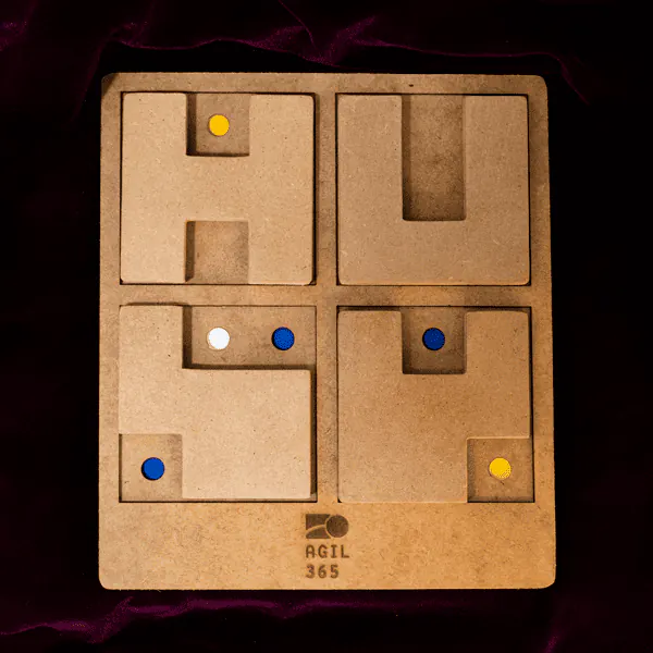 Escoge una carta del mazo de cartas de 48 niveles. Luego de esto comienza a colocar las piezas de tal manera que solo dejes visibles los colores que la carta te a indicado.