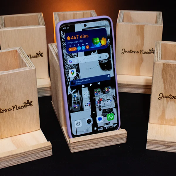 Portalápices tarjetero o soporte para teléfono móvil en triplex de pino