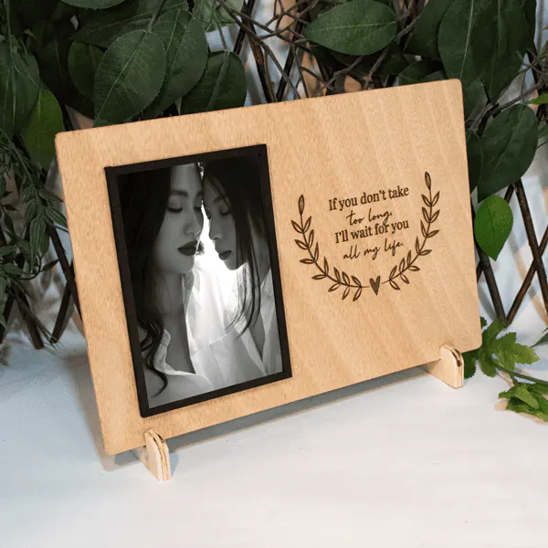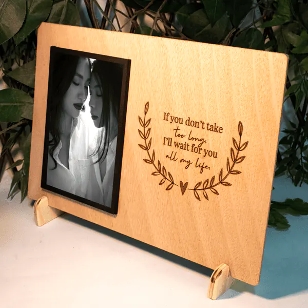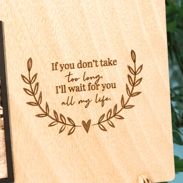 Portaretrato en madera triplex de okume, perfecto como regalo o decoración. Con su personalización y facilidad para cambiar la foto, se adapta a cualquier ocasión. Resalta tus recuerdos en un diseño elegante y duradero. Fabricamos sobre pedido.
