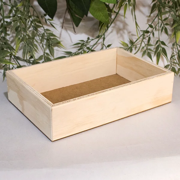 La Bandeja sencilla en triplex de pino cuenta con un diseño simple y versátil, con acabado crudo y textura lisa, lo que la convierte en una excelente opción para uso decorativo o como contenedor en el hogar, oficinas o espacios comerciales.